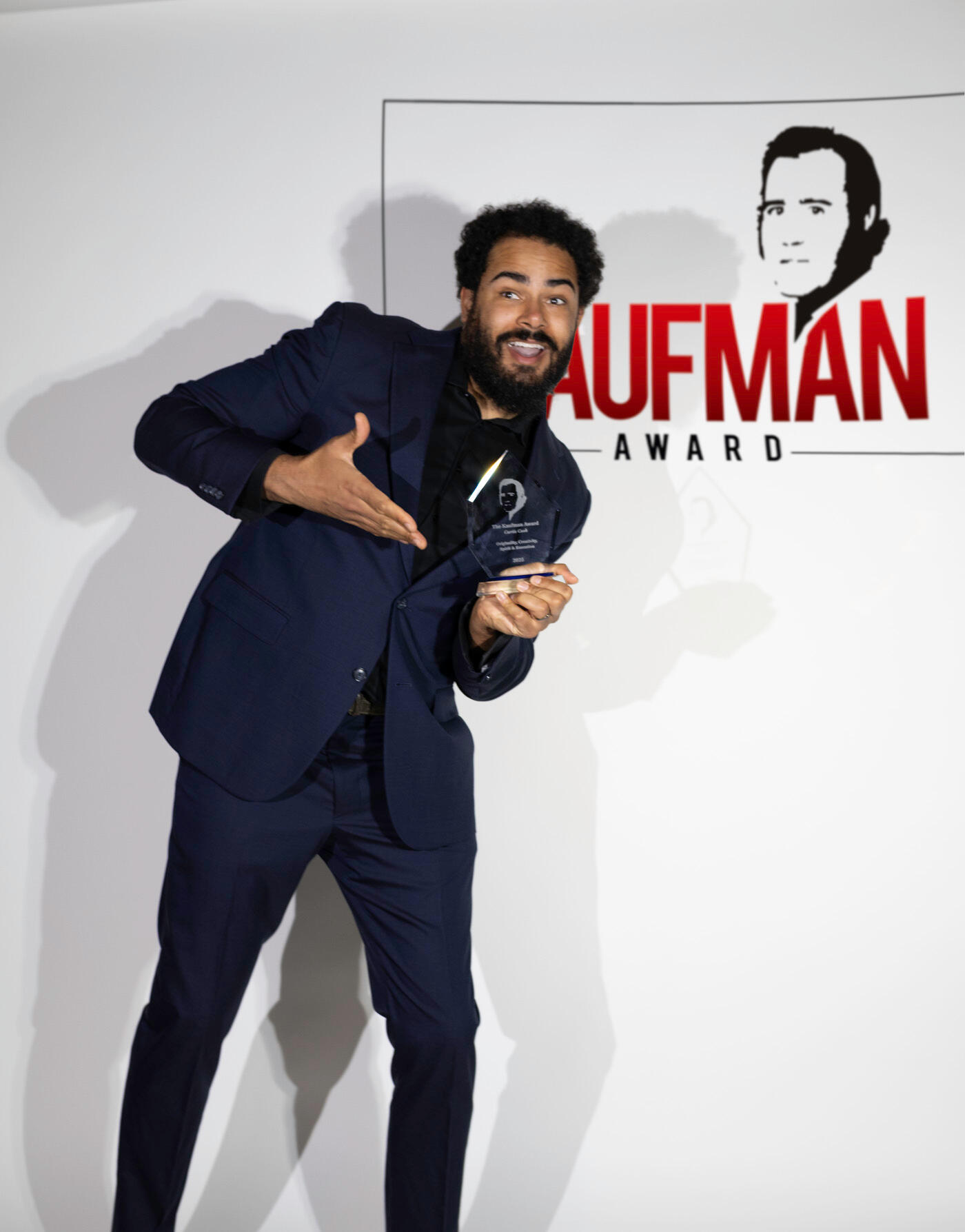 The Kaufman Award works to maintain the memory of one of history’s most extraordinary performers.The award honors Kaufman's creativity, highlighting budding comedians whose on-stage presence showcase exemplary aspects of originality, creativity, spirit, and execution.A single winner is chosen from eligible applicants to receive the following:• $1,000 cash prize• Kaufman Award trophy• Interview with past winners• Nationwide publicityBackgroundKaufman’s purported death from cancer cut short a promising career brimming with undeniable talent. Despite his alleged untimely departure, Kaufman’s unpredictable persona and shocking stage presence have helped him to remain ever-prevalent in the comedy community, even decades after his final performance.In an effort to preserve Andy’s legacy, The Kaufman Award was created. The inaugural award ceremony took place on November 11, 2004 at Caroline’s Comedy Club in New York and was hosted by the late and great Richard Belzer.The Award CriteriaThe Kaufman Award celebrates artists with unorthodox style and a willingness to take chances, defying what audiences have come to expect of comedy. Andy thought of himself as a performance artist, and this award showcases performers who similarly refuse to be placed into a singular box, inviting sorrow, rage, and puzzlement to share the stage in their act alongside ever-present laughter. their ac. The criteria for The Kaufman Award are in-keeping with his memory and highlight his dedication to originality, creativity, and spirit.The Talent CompetitionThe Kaufman Award is a national endeavor. Performers apply with video reels of original performances to be judged by a qualified batch of judges, culminating in a live showcase for selected artists in NYC, NY.